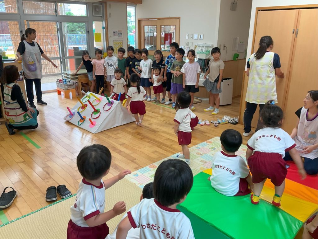 始めの方は恥ずかしそうにしていましたが園内探検をしている間にすぐに慣れ、こども園時代に遊んでいたオモチャをみて「わあー懐かしい!」「これで遊んでたー♡」と園時代のことを思い出して話をしながら遊ぶ姿が見られました。とても微笑ましかったです。