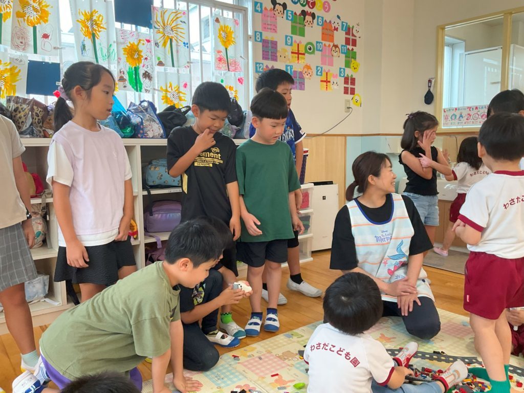 「卒園児 小学生のお友だち集まれ!夏休み わくわくデー」ということで、今年度は7月28日・8月7日・21日の3日間、小学生を園に招いて在園児さんと一緒に楽しく過ごしました。卒園して久しぶりに会うお友だちもいて、子ども達だけでなく保育教諭も嬉しかったです。