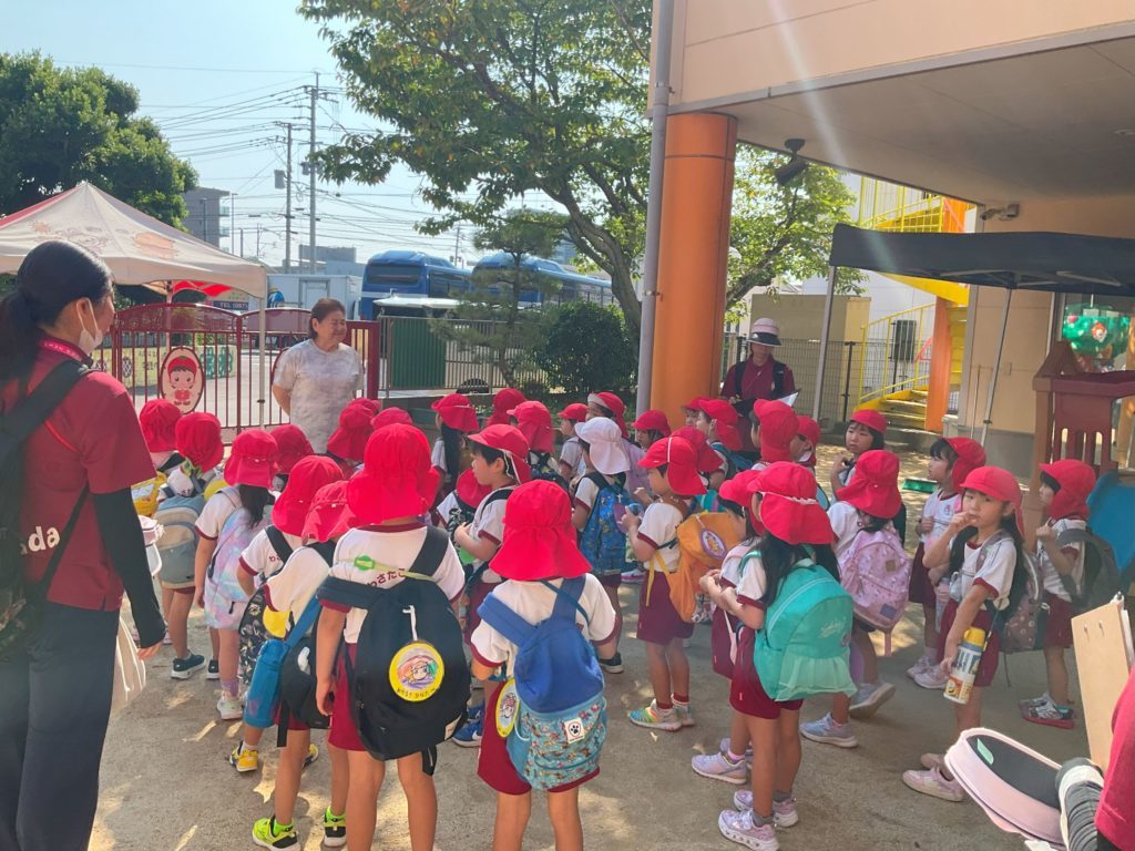 いよいよ出発、自分の荷物を持ち園に残っている先生や年下の友だちに見送られ、元気に「行ってきまーす!」と手を振って出発しました。