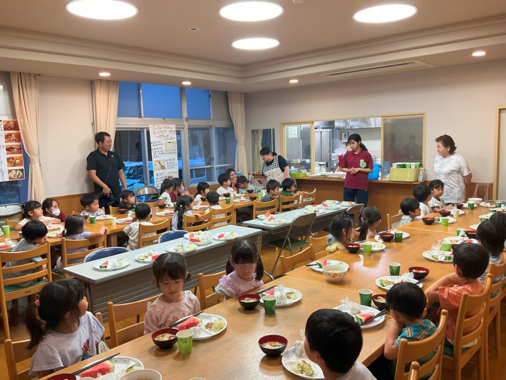 8月30日(土)・31日(日)に4歳児(すいか組)・5歳児(ぶどう組)合同で、庄内ゆうゆう館でお泊り保育を行いました。