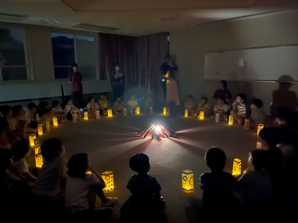 模擬のキャンプファイヤーでは、本物の火は使いませんでしたがキャンプファイヤーを通して火の扱い方や怖さを知り、グループの出し物を見て楽しむ事が出来ました。