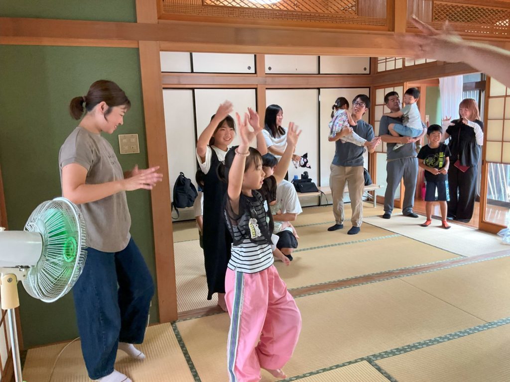 親子でこちょこちょしたり、ツンツンしたりして触れ合いながら踊る「指忍法」、子ども達が大好きなアンパンマンの体操「サンサン体操」、親子で楽しそうに踊る姿、また笑い声がたくさん聞こえてきてとても微笑ましかったです。