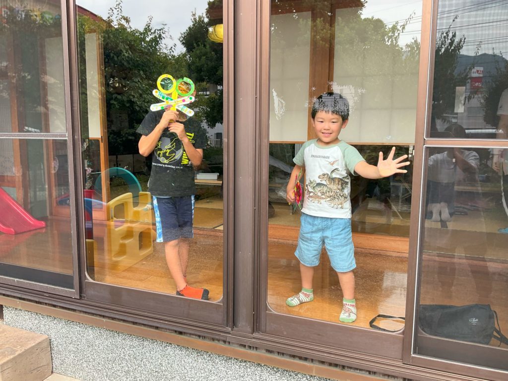 最近秋空にトンボがたくさん飛んでいるので、今回は「とんぼのメガネ製作」を親子でしました。