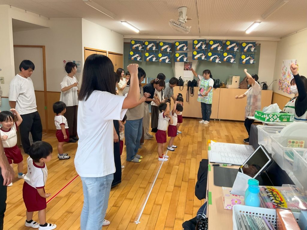 いつもとは違う雰囲気で少しいつもよりは表情が硬く感じましたが、時間が経つにつれ、普段の子ども達の姿を保護者の方にお見せすることが出来ました。