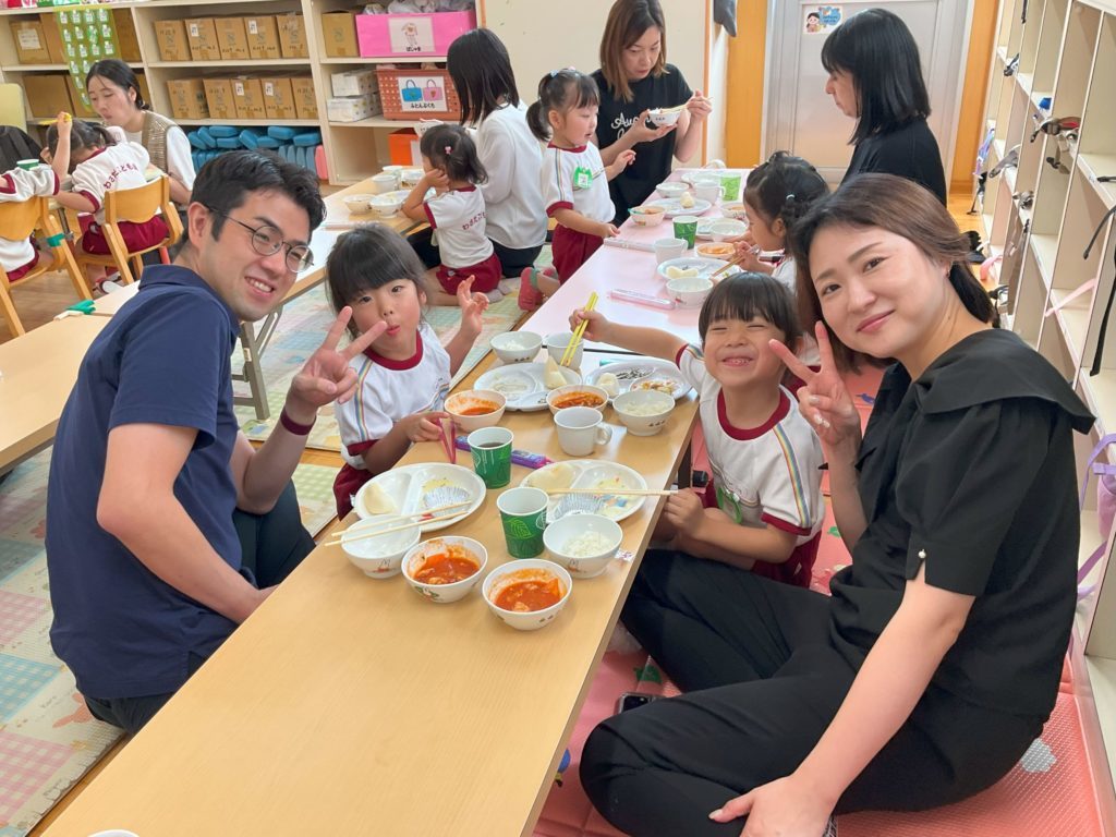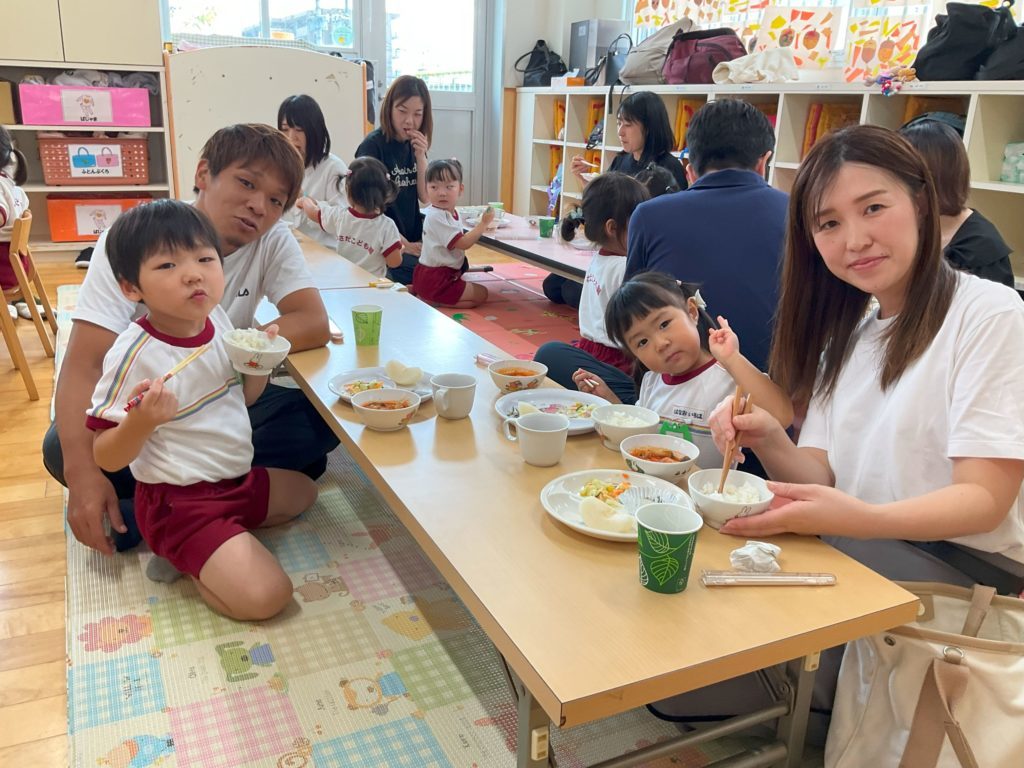 給食試食会でも、今日はママやパパと一緒に食べるんだー!!と嬉しそうな子どもたちでした。