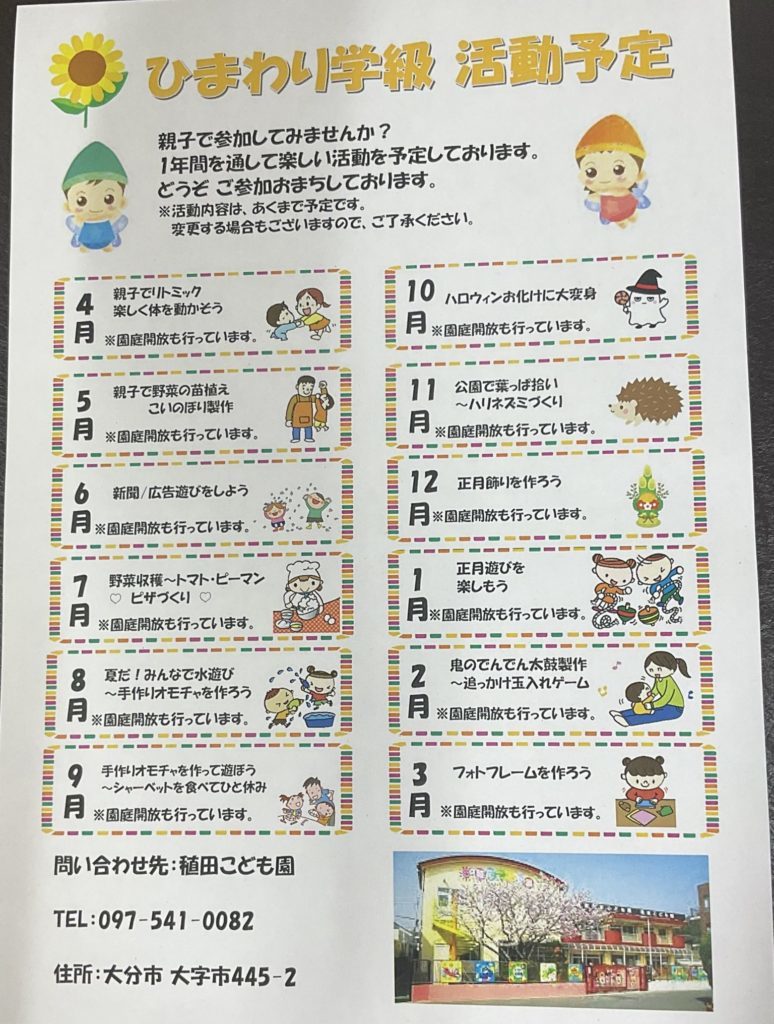 令和8年度 家庭教育学級ひまわり 年間活動計画 今年度も親子の触れ合い遊びや製作など行う家庭教育学級を開催します。 各活動、先着で10組ほど募集しています。ご参加お待ちしております。 年間活動計画は下記のようになっています。活動内容は、あくまで予定です。 変更する場合もございますので、ご了承下さい。 一覧へ戻る